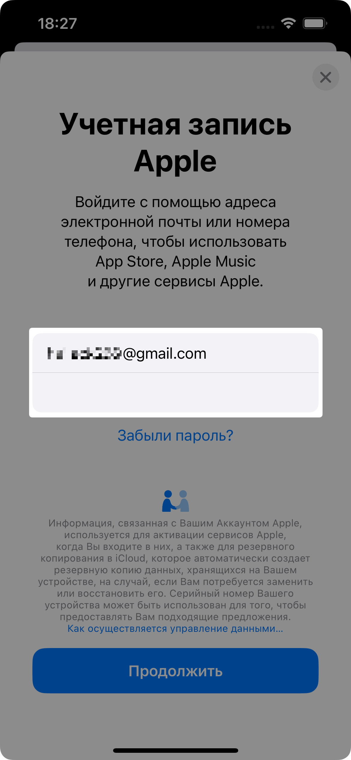 Нажмите Войти с учетной записью Apple.