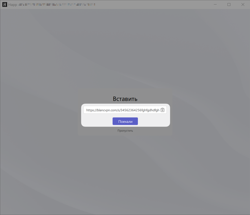 Для настройки BlancVPN с помощью Happ на Windows вам потребуется клиент и ключ доступа протокола V2Ray.